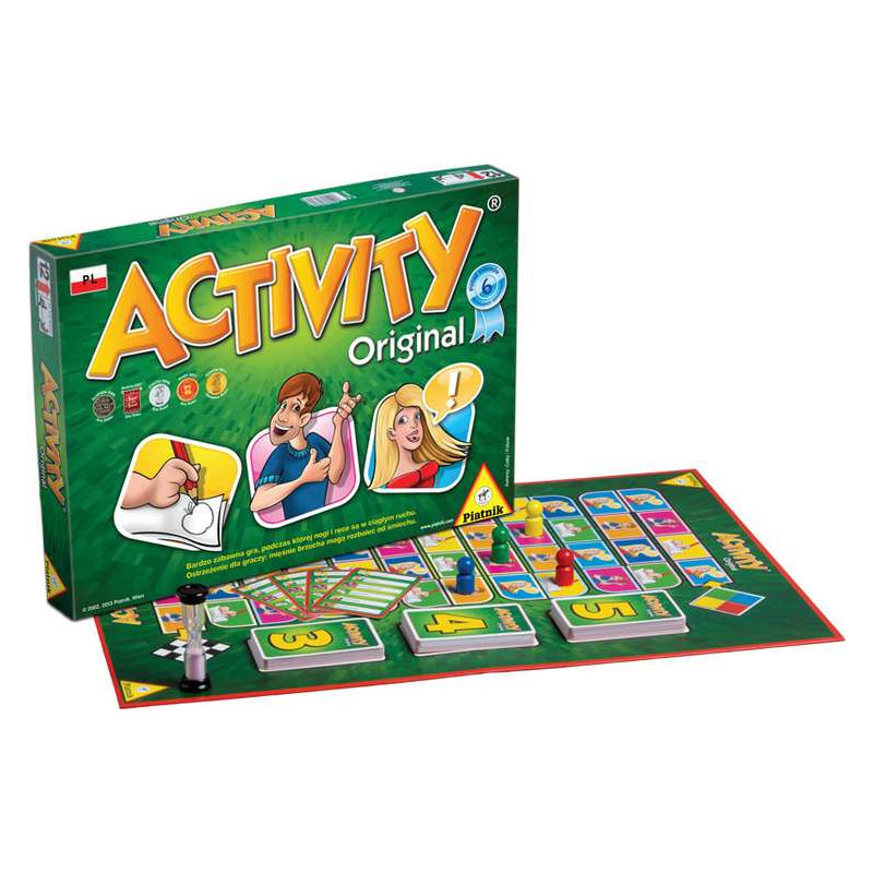 Pierwsza polska wersja kultowej gry Piatnika, potocznie nazywanej kalamburami. Wielokrotnie nagradzana i wyróżniana. Znana w całej Europie, dotychczas rozeszła się w nakładzie przeszło 4 milionów. Przebój imprez wśród znajomych i rodziny. Świetna forma integracji, niezwykły trening komunikacji i kreatywności, a przede wszystkim doskonała rozrywka! ACTIVITY łączy klasyczną grę planszową z różnorodnymi formami współzawodnictwa. Drużyny dążą do mety poprzez odgadywanie haseł, prezentowanych na trzy sposoby: graficznie, ustnie lub na migi. Rysunek, mowa i aktorstwo to wyzwania, które odsłaniają nowe oblicza nawet najbliższych osób. ACTIVITY zawiera ponad 2500 haseł z różnych dziedzin, a oryginalne reguły zapewniają dynamiczną rozgrywkę. Gra generuje mnóstwo śmiesznych sytuacji. Z biegiem czasu drużyny zwierają szyki, a emocje wymykają się spod kontroli. Luźno zapowiadający się wieczór zmienia się w ekscytujący pojedynek!