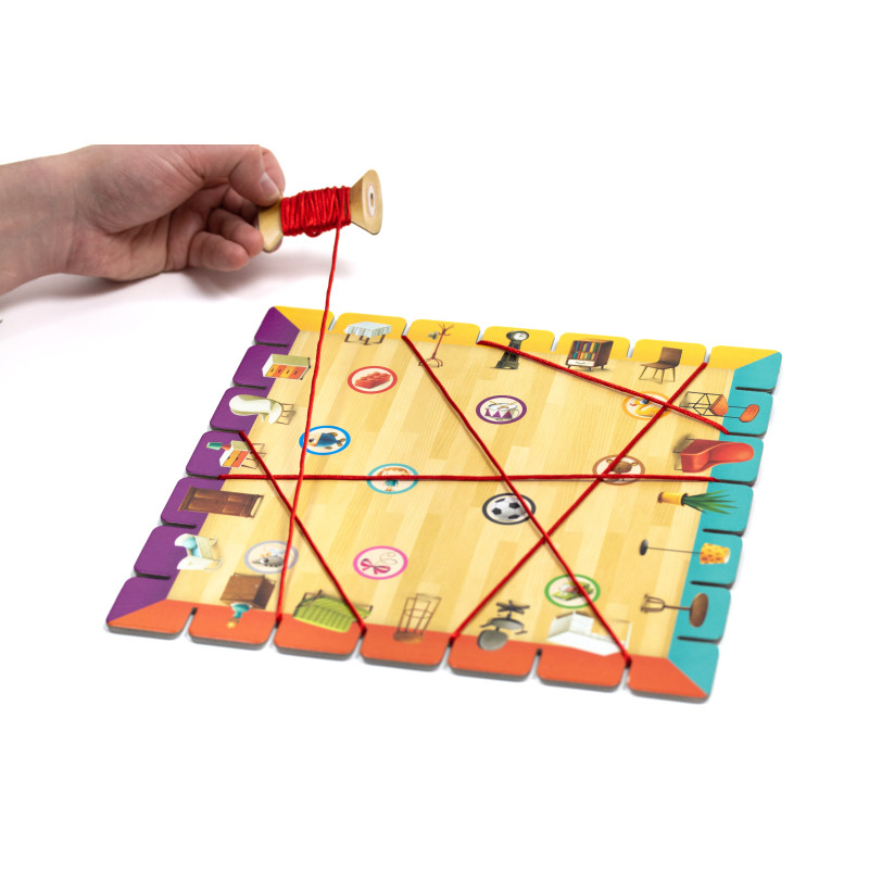Gra wyróżnia się oryginalną mechaniką z wykorzystaniem sznurków, które dziecko przeciąga po planszy — to świetnie rozwija motorykę i daje dużo frajdy.