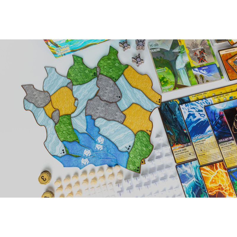 - Wyspa - walka z Najeźdźcami toczy się na podzielonej na krainy, modularnej planszy wyspy, na której rozsiane są tubylcze wioski Dahan oraz wasze Duchy. Współpracujcie, aby obronić wyspę przed kolonizacją!