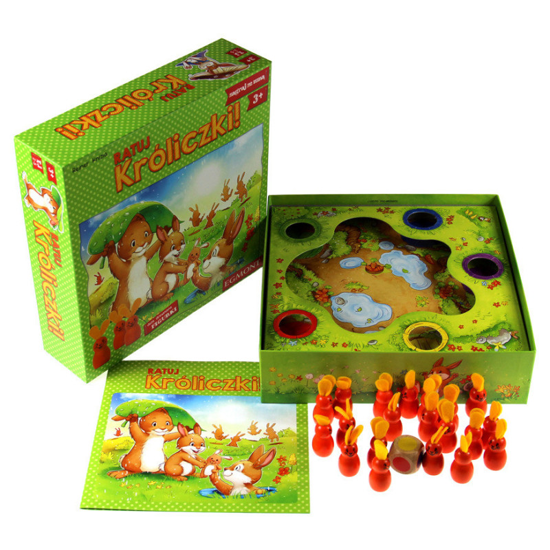 Gracze rzucają kolorową kostką i starają się uratować jak najwięcej króliczków. To gra-zabawa, która uczy rozpoznawania kolorów oraz liczenia. Nadaje się świetnie jako pierwsza planszówka w życiu dziecka.