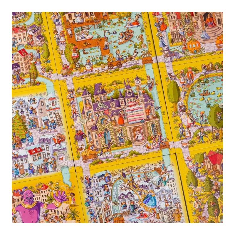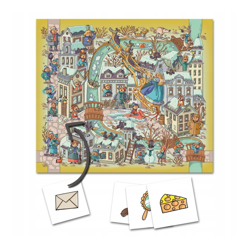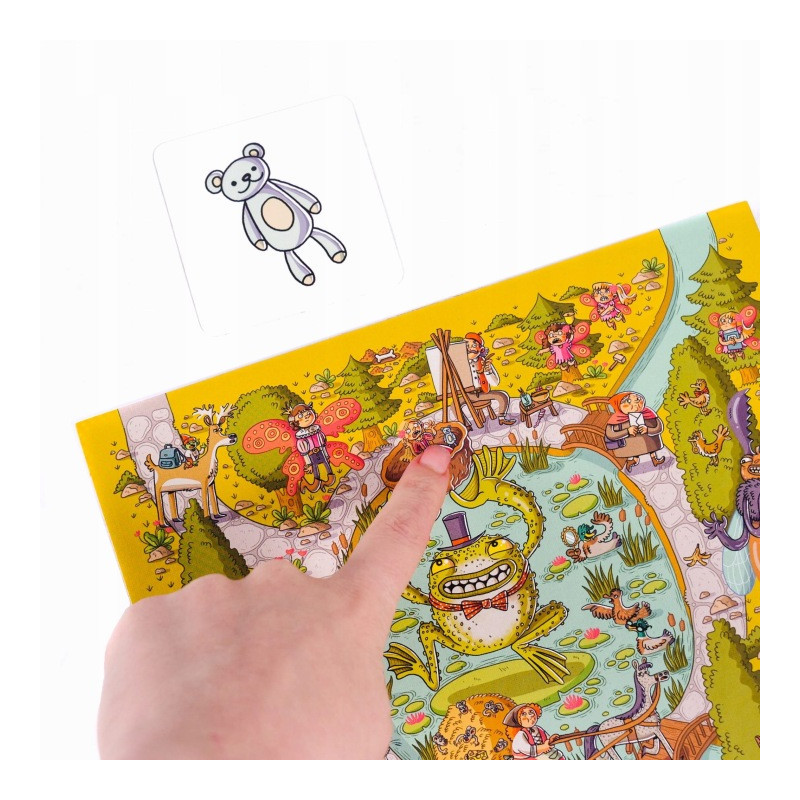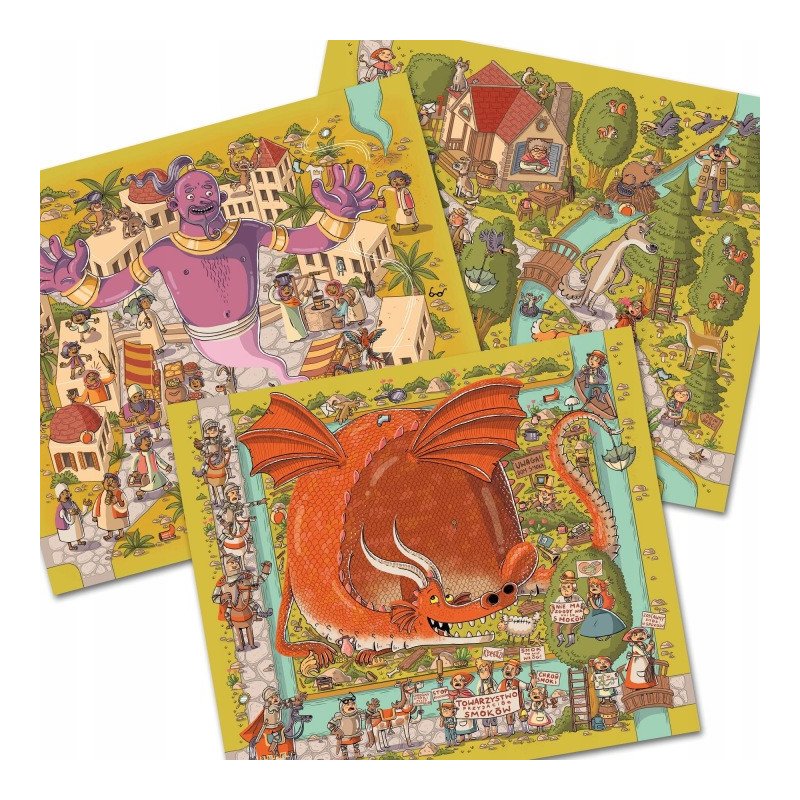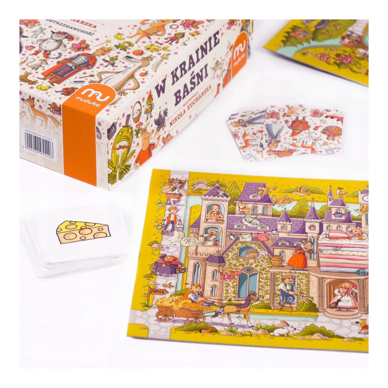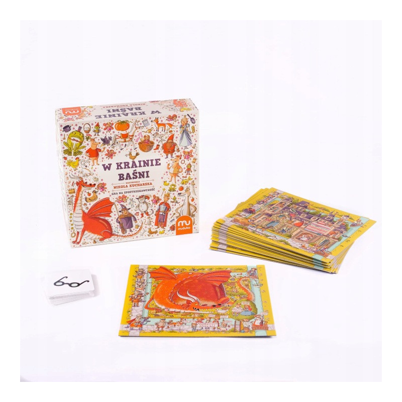 Każda plansza reprezentuje inną baśń. Będziecie wytężać wzrok na rzece, w której rybak odnalazł Złotą Rybkę, szukać obiektów pod opasłym cielskiem Smoka Wawelskiego lub w stawie, po którym pływa Brzydkie Kaczątko. Ta rodzinna gra na spostrzegawczość zachwyca przepięknymi ilustracjami znanej i lubianej dziecięcej ilustratorki Nikoli Kucharskiej. Kilka trybów rozgrywki zapewni wszystkim członkom rodziny dużo dobrej zabawy przez wiele godzin.