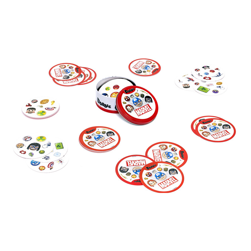 Zabierz Hulka, Lokiego i Ant-Mana gdzie tylko zechcesz i baw się, szukając par w popularnej grze towarzyskiej! Spójrz na pierwszą kartę, którą trzymasz w ręku oraz na tę, która leży na środku stołu. Znajdź na nich wspólny obrazek, nazwij go i szybko pozbądź się swojej karty. Teraz następna! Tylko nie zwątp, dwie karty zawsze łączą się dokładnie jednym symbolem!