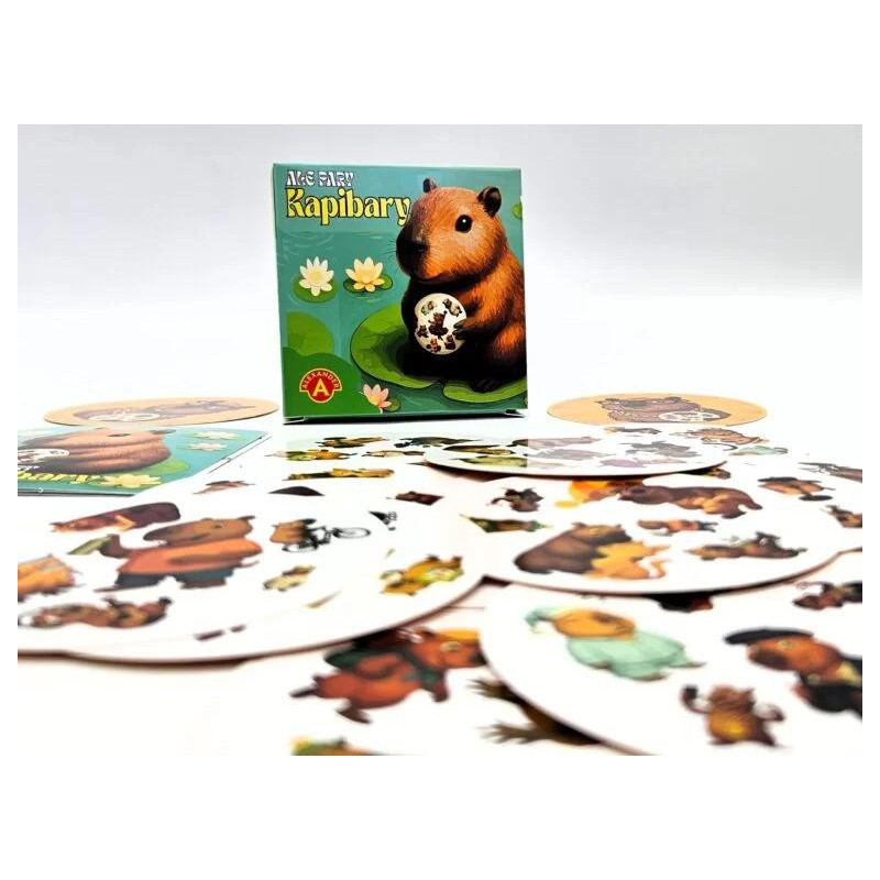 Witaj w świecie kapibar – przesympatycznych zwierząt, które z gracją i ze spokojem odnajdują się w najróżniejszych rolach. W tej dynamicznej i pełnej uroku grze karcianej liczy się jedno: kto pierwszy odnajdzie tę samą kapibarę na dwóch różnych kartach.