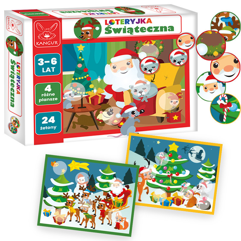 Loteryjka świąteczna – odkryjmy razem magię świąt! Jedna z pierwszych gier proponowanych dla dzieci w wieku od 3 lat.