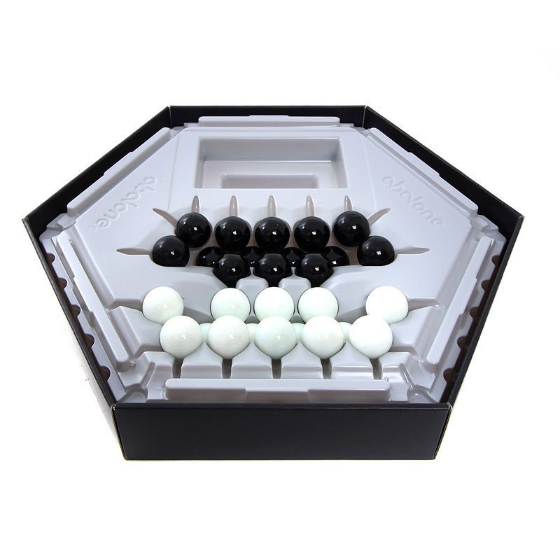 Abalone to klasyczna, dwuosobowa gra logiczna, w której przepychamy swoje kule po sześciokątnej planszy do momentu, gdy któryś z graczy pozbawi przeciwnika 6 bil.