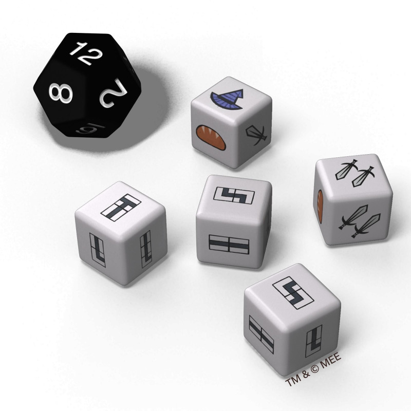 - Pierwszy gracz rzuca białymi kośćmi podróży na środek stołu. Następnie rozgrywa pierwszą turę: wybiera jedną z kości i kładzie ją przed sobą, po czym natychmiast wykonuje odpowiadającą jej akcję w swojej księdze przygód.