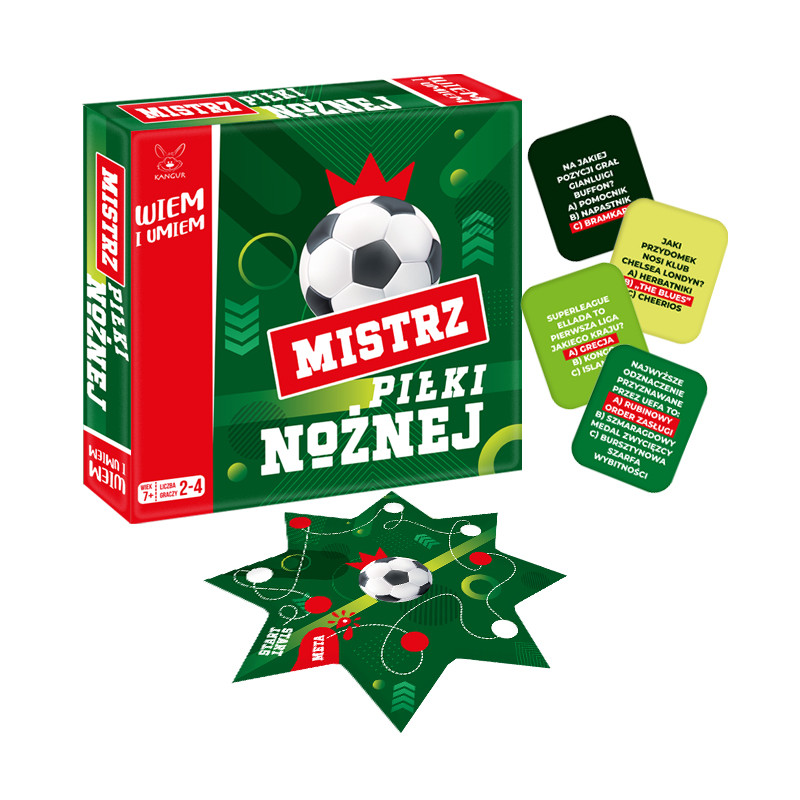 Co oznacza gra defensywna? Ilu może być zawodników rezerwowych? Z jakiej odległości strzelamy karne? Wesoła i dynamiczna gra, w której uczestnicy odgadują wiele ciekawostek ze świata futbolu. Doskonała rywalizacja, odpowiadaj na pytania i przesuwaj pionek do przodu. WYGRYWA GRACZ, KTÓRY ODPOWIE NA WIĘCEJ PYTAŃ!