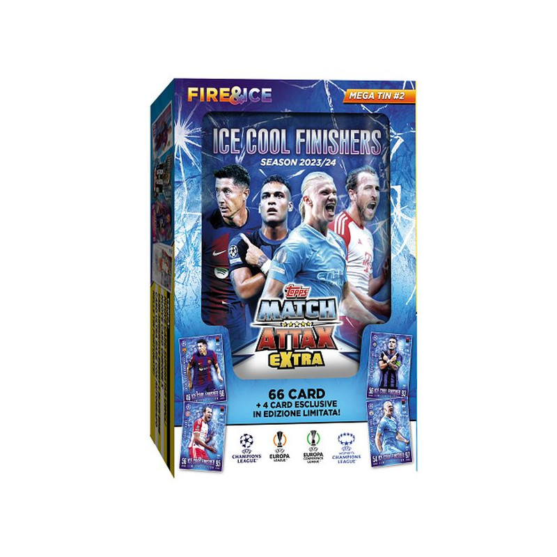 66 kart z kolekcji Match Attax Extra W zależności od koloru puszki dodatkowo: 4 gwarantowane karty w puszcze Ice Cool Finishers Limited Edition (Robert Lewandowski, Erling Haaland, Harry Kane, Lautaro Martinez) 4 gwarantowane karty w puszcze Red Hot Heroes Limited Edition (Gavi, Rodrygo, Leroy Sane, Marcus Rashford) Puszka do przechowywania kart Wymiary puszki: ok. 16,5 x 11 x 3 cm (wys./dł x szer. x gr.)