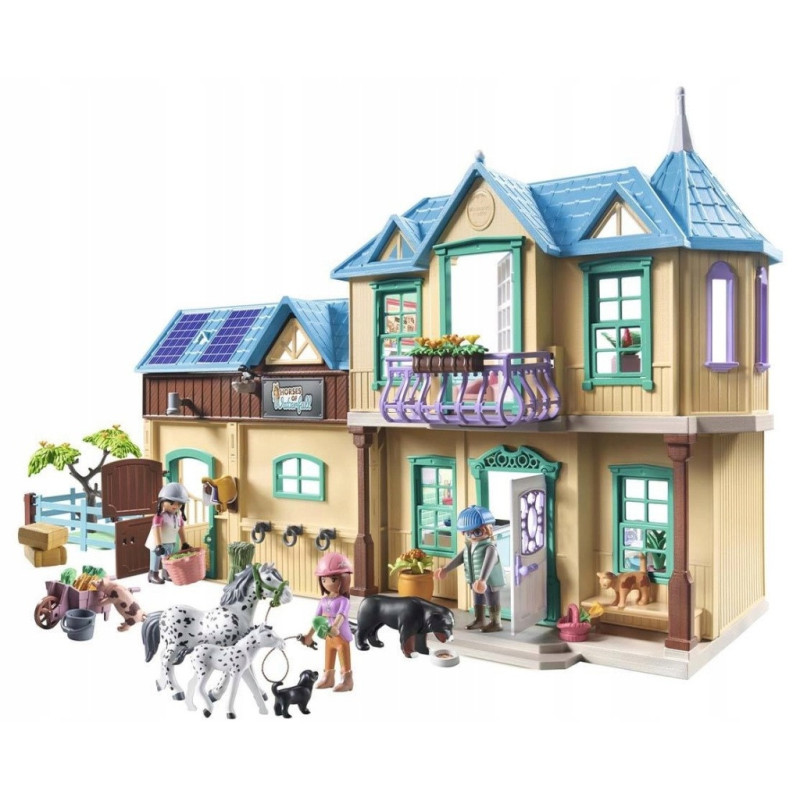 Playmobil Ranczo Waterfall 71351 to rozbudowany zestaw stadniny koni, który pozwala dziecku stworzyć własny świat opieki nad zwierzętami. W komplecie znajduje się dom, stajnia, wybieg oraz figurki i konie, dzięki czemu zabawa jest realistyczna i bardzo angażująca.
