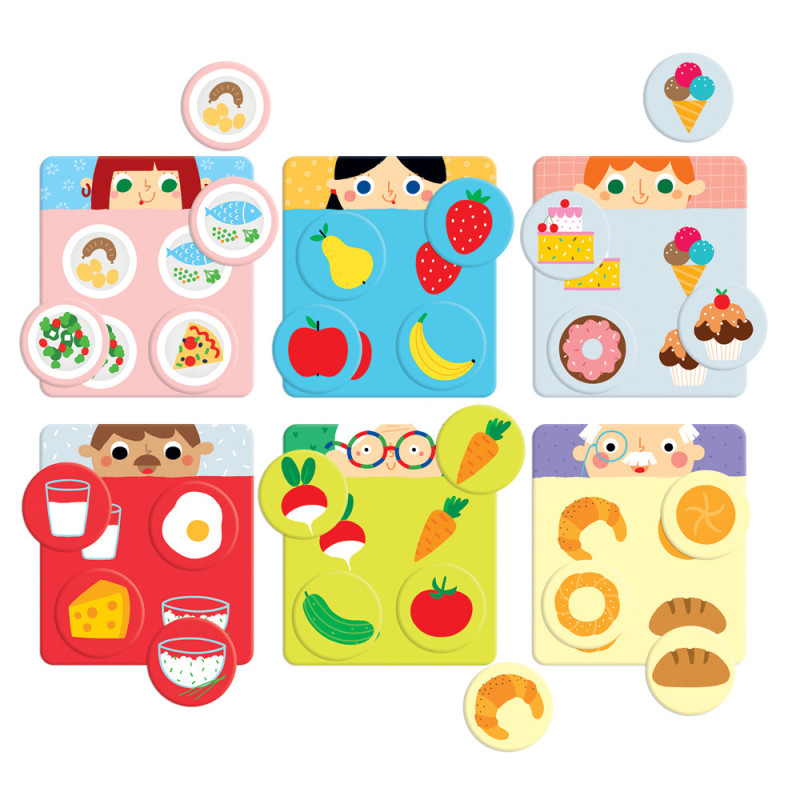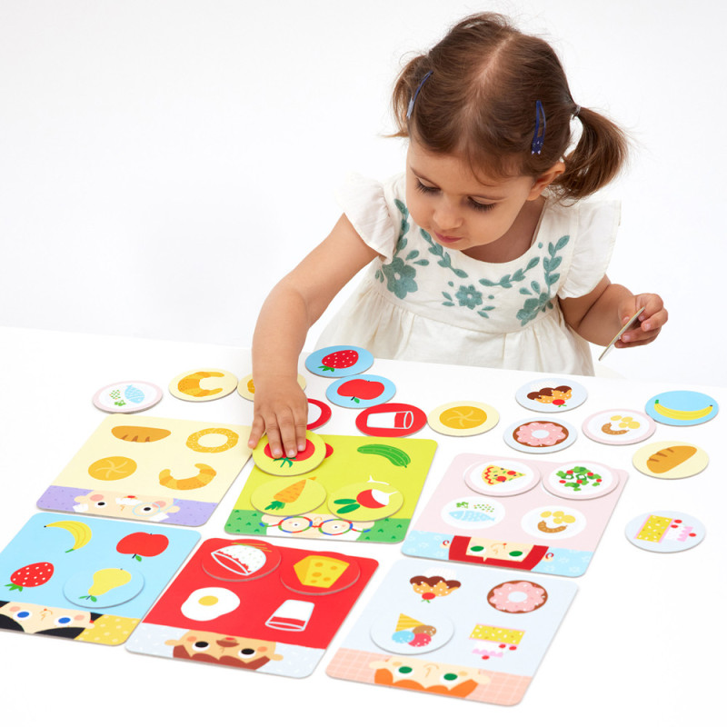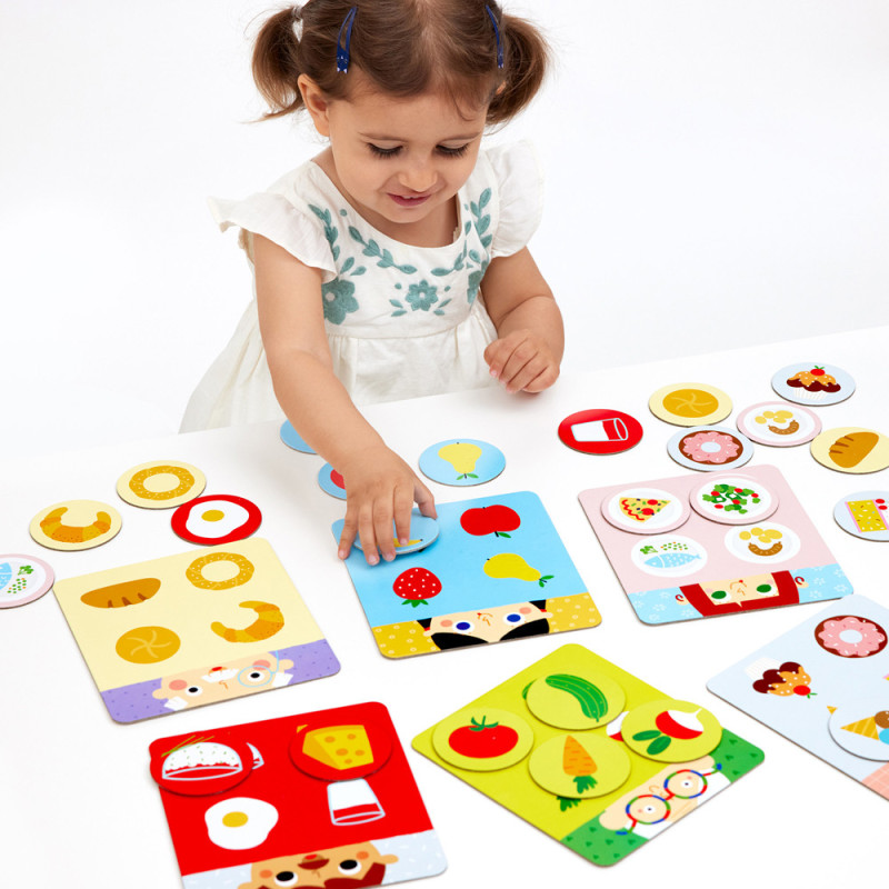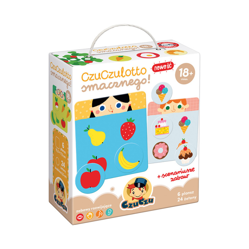 Składa się z 6 plansz i 24 żetonów, które sprawdzają się podczas różnorodnych aktywności, oraz poradnika pełnego pomysłów na zabawy.