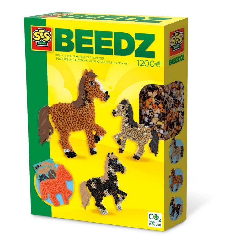 Dzięki temu zestawowi koralików do naprasowywania od SES Beedz z łatwością stworzysz piękne konie w realistycznych kolorach. Gdy skończysz, przyklej grzywę i oczy do koralików, a twój kucyk będzie wyglądał niemal jak żywy! Koraliki do naprasowywania firmy SES Creative nie zawierają PVC i są najwyższej jakości. Możesz bawić się godzinami, a rezultat zawsze będzie kolorowy.