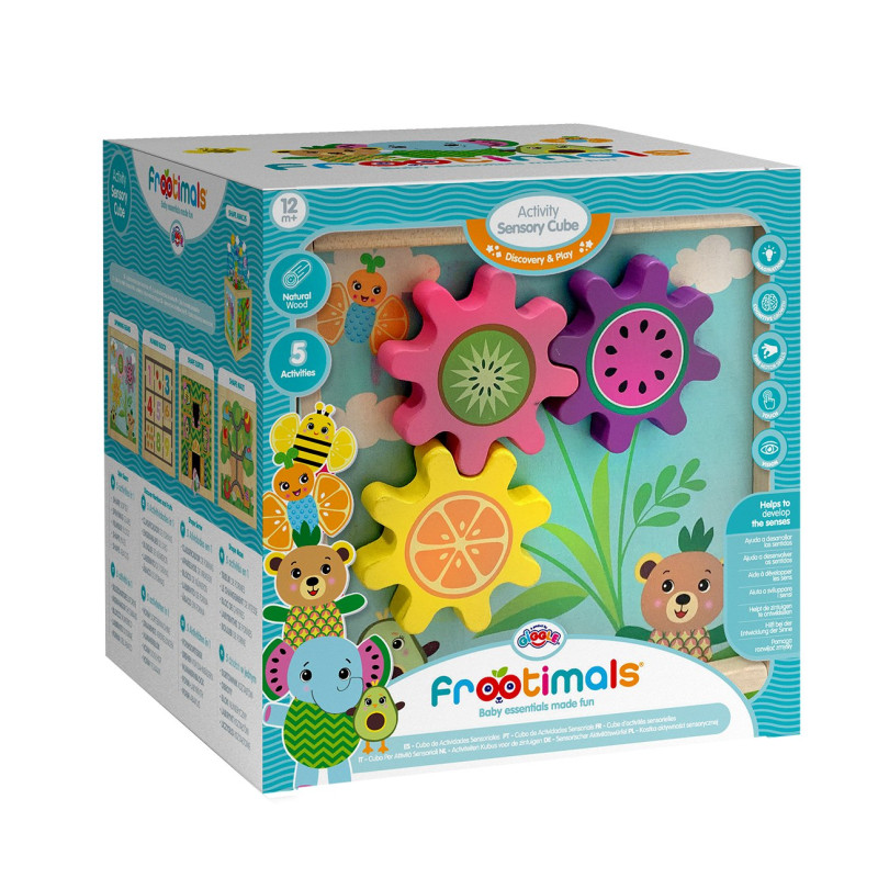- Sorter kształtów: Figurki Frootimals i kolorowe kształty, aby stymulować zmysły i umiejętności motoryczne dziecka.