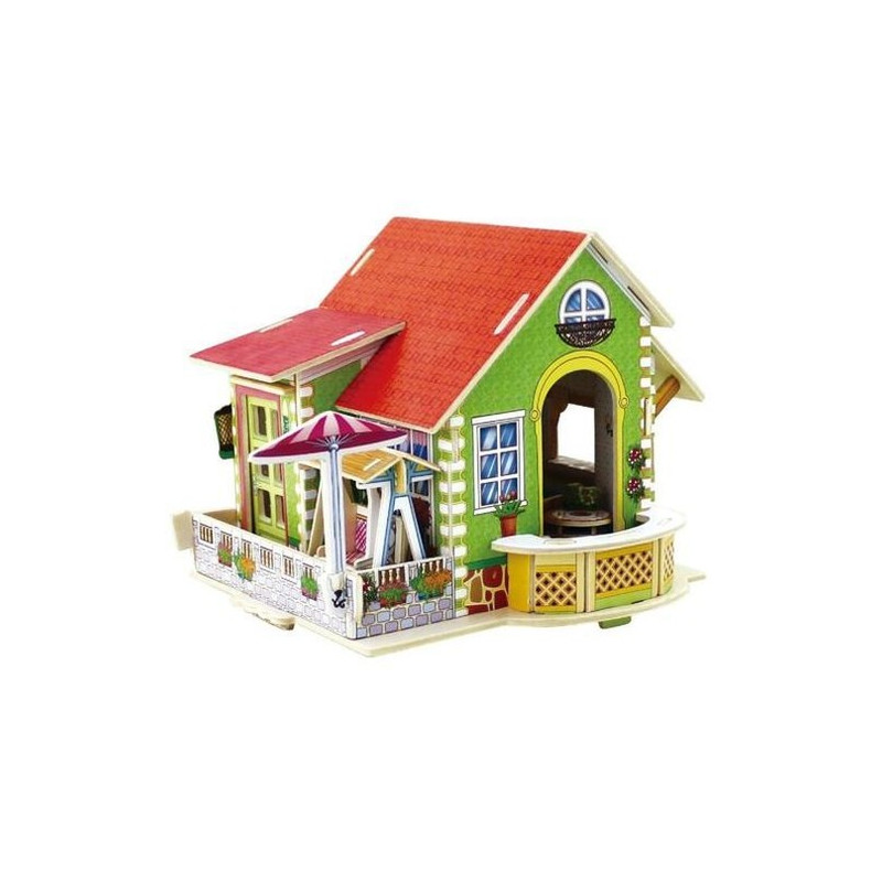 Odkryj kreatywną zabawę z tym wyjątkowym zestawem puzzli 3D! Produkt zawiera 70 drewnianych elementów, które po złożeniu tworzą uroczy dom z meblami — idealny dla dzieci (wiek 6+) oraz wszystkich miłośników miniatur i modelarstwa.