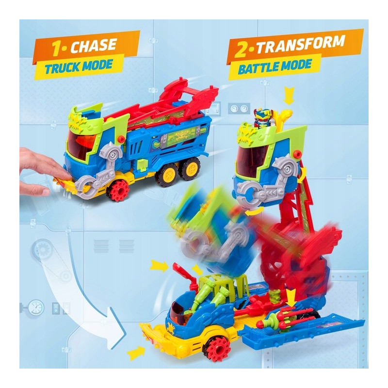 - Przestronny pojazd: Ciężarówka pomieści aż 12 figurek SuperThings, co pozwala na rozbudowane scenariusze zabawy.