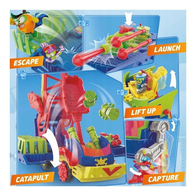- Wielofunkcyjna ciężarówka: Wyposażona w miotacz pocisków i katapultę, umożliwia dynamiczne starcia między bohaterami a złoczyńcami.