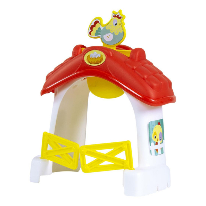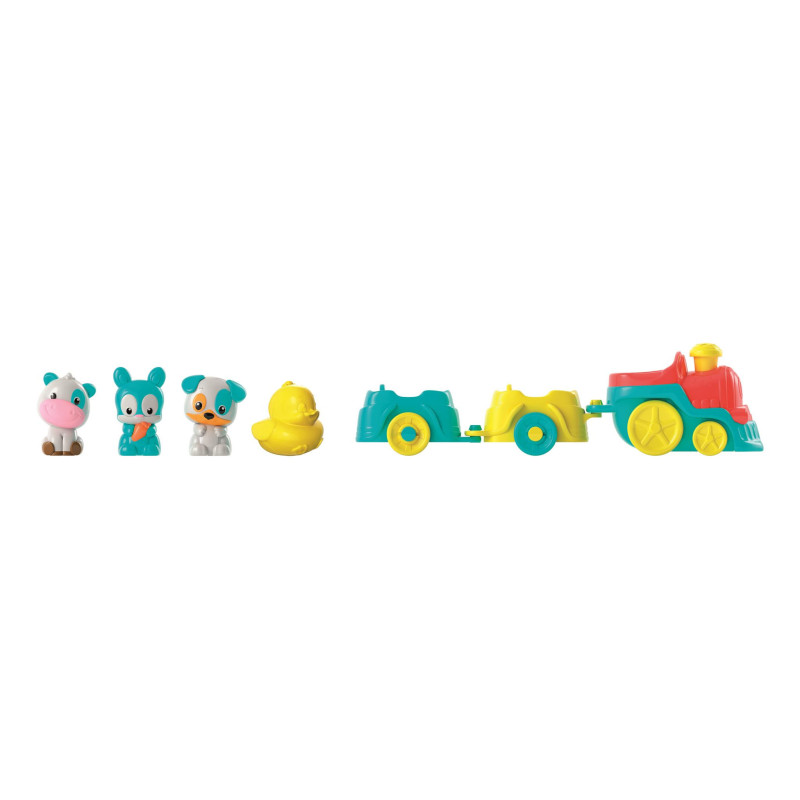 Pociąg mknie przez pełną atrakcji trasę, będącą zestawem do zabawy, osadzonym w świecie gospodarstwa rolnego. Po dotknięciu komina pociąg wyrusza w fantastyczną przygodę, w której towarzyszą mu przyjaciele: piesek, krówka, króliczek i kaczątko. Kiedy przejeżdża pociąg, farma ożywa: ramiona dźwigów podnoszą się, młyn zaczyna się obracać, a kogut i kaczątko wydają z siebie charakterystyczne dla nich dźwięki. Gdy zamknie się żółtą bramę, kaczątko zacznie „pływać” po stawie, a karuzela będzie się obracać. To dopiero zabawa! Stymuluje umiejętności manualne i koordynację wzrokowo-ruchową oraz pobudza wyobraźnię.