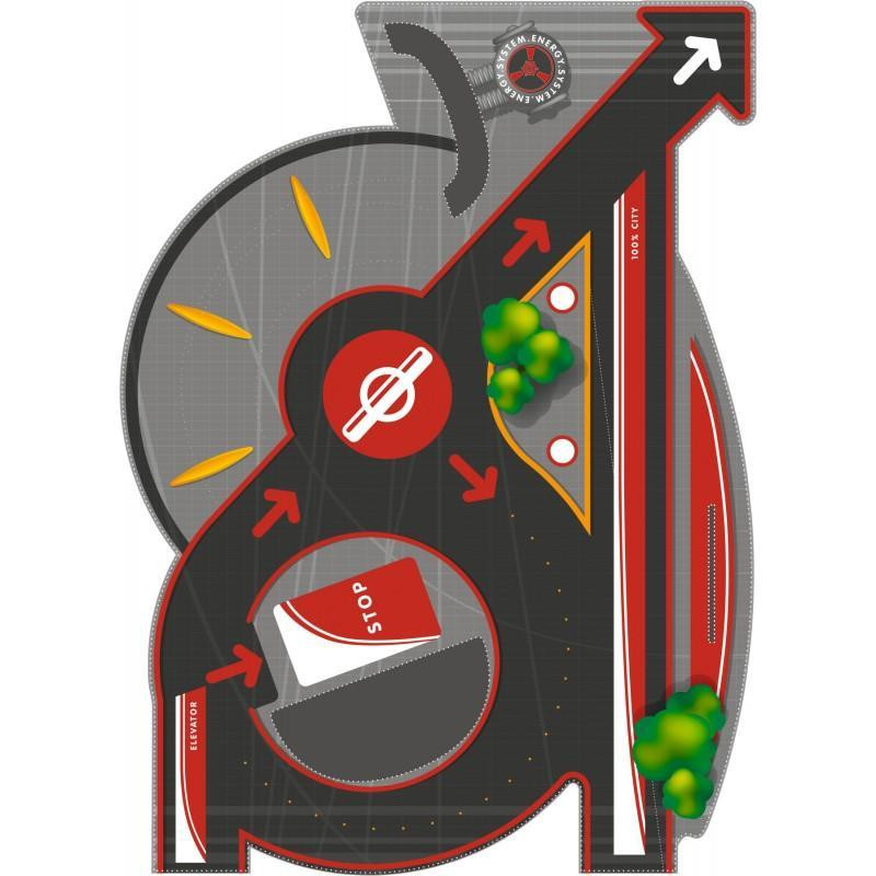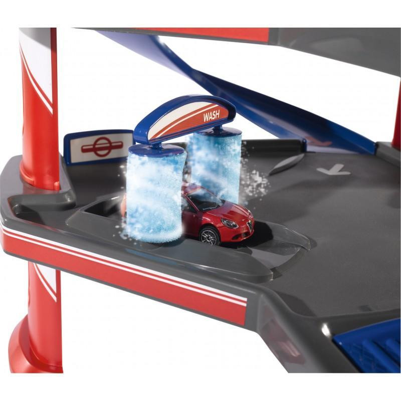 Na najniższym poziomie garażu znajduje się rondo, parking dla samochodzików oraz wjazd do ruchomej windy. Na drugim piętrze również znajduje się parking, wyjazd z windy prowadzący prosto do zjazdu na dół oraz myjnia z dużymi, niebieskimi szczotkami. Na trzecim piętrze garażu znajduje się wyjazd z windy, wjazd na górną część toru dla samochodzików, stacja benzynowa oraz winda dla samochodzików - dzięki której można bez problemu transportować autka na różne poziomy garażu.