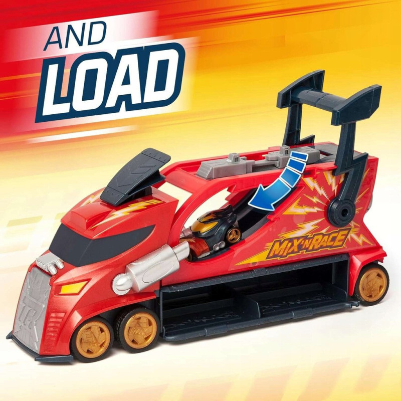 Wejdź w świat ekscytujących wyścigów z T-Racers MIX’N RACE Rocket Truck! To nie tylko ciężarówka, ale także potężna wyrzutnia i praktyczny transporter, który zmieści aż trzy samochodziki T-Racers w swoim wnętrzu. Dzięki możliwości wymiany części możesz personalizować swoje pojazdy, tworząc unikalne kombinacje i przygotowując je do emocjonujących wyścigów.