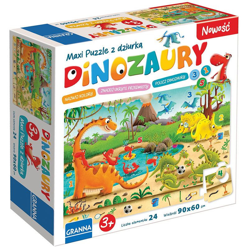 Dinozaury Maxi układanka z cyferkami 24 el 90x60 cm puzzle edukacyjne Outlet