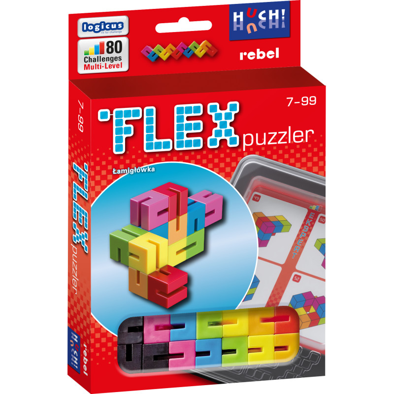 Wypróbuj swoją wyobraźnię przestrzenną i sprawdź, jak dobrze radzisz sobie z rozwiązywaniem abstrakcyjnych łamigłówek! Flex Puzzler to specjalny plastikowy mechanizm, który możesz wygiąć w dowolny sposób pod kątem 90°. Tylko jak znaleźć właściwy układ, wskazany na karcie zadania?