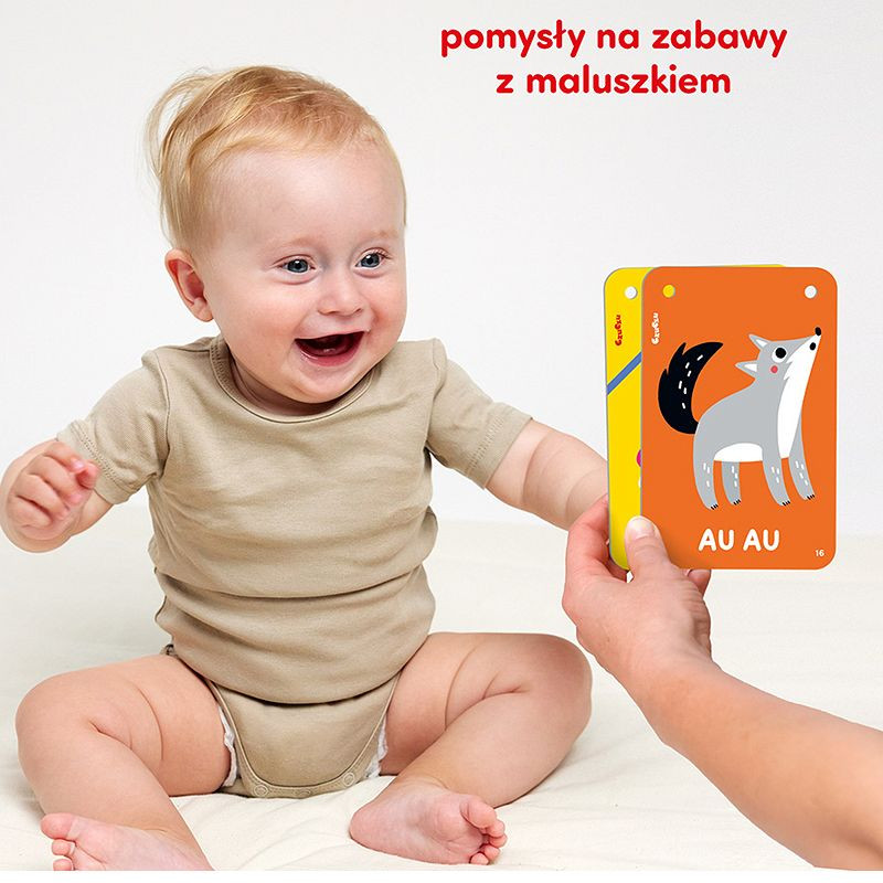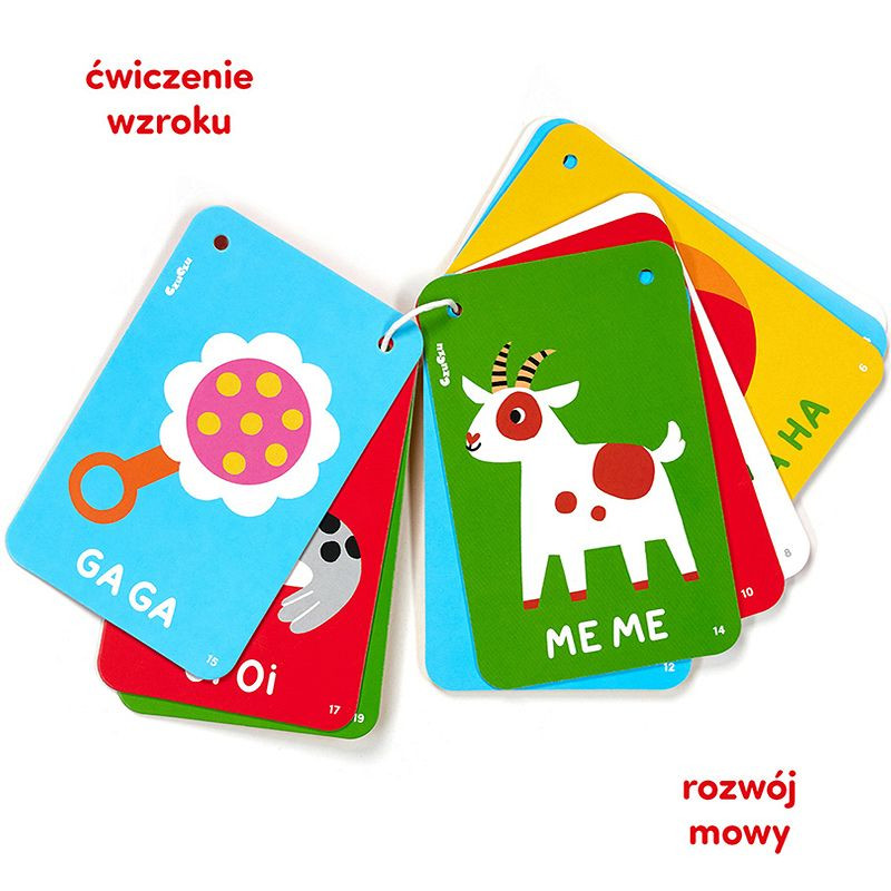 Zawiera 20 wyraźnych ilustracji, które przyciągają uwagę maluszka, co doskonale wspiera rozwój zmysłów.