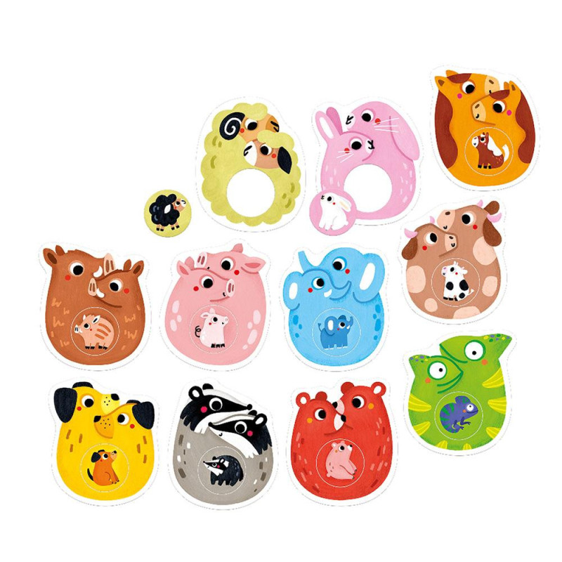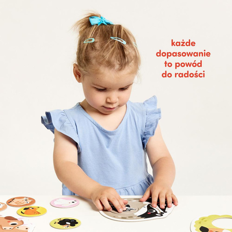 Edukacyjne układanki sprawdzą się jako pierwsze układanki już dla roczniaków. Zabawa polega na dopasowaniu kółeczek w odpowiednie miejsca. W zestawie znajdziecie 11 dwuelementowych puzzli z uroczymi, pełnymi ciepła i humoru ilustracjami, które przedstawiają maluchy i ich rodzinki. Zabawa rozwija małą motorykę i spostrzegawczość, wspiera rozwój mowy, myślenia i wyobraźnię.