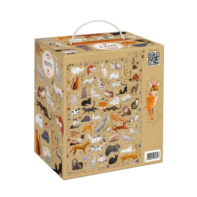Duże 1000-elementowe puzzle. Na autorskiej ilustracji znajdziecie przeróżne koty, kotki i kociaki.