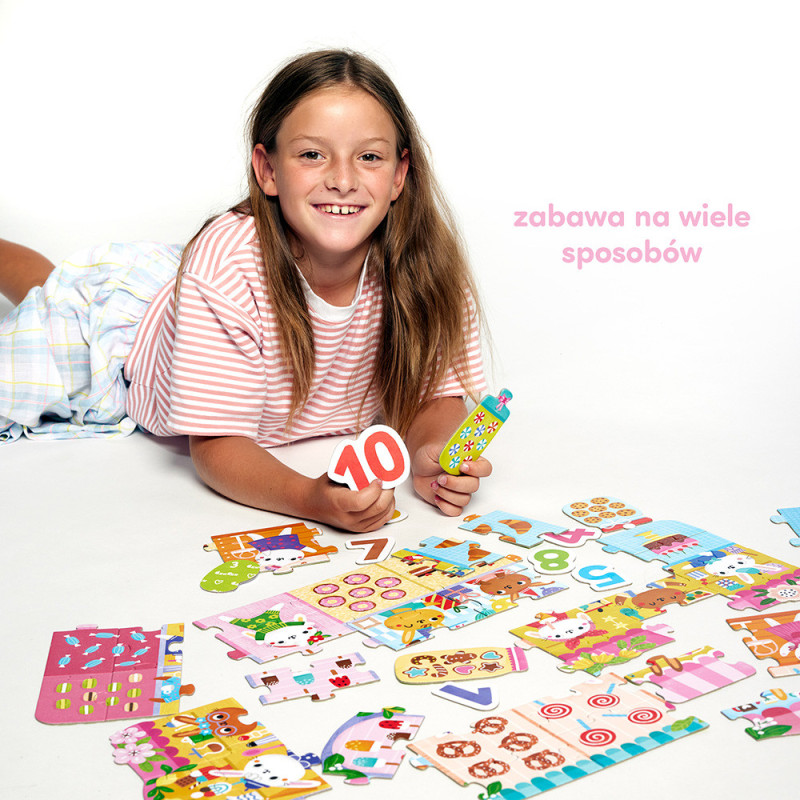 Pomysł na edukacyjne puzzle dla przedszkolaka zabawa rozwija mała motorykę, spostrzegawczość i umiejętność liczenia zestaw wyprodukowano w Polsce