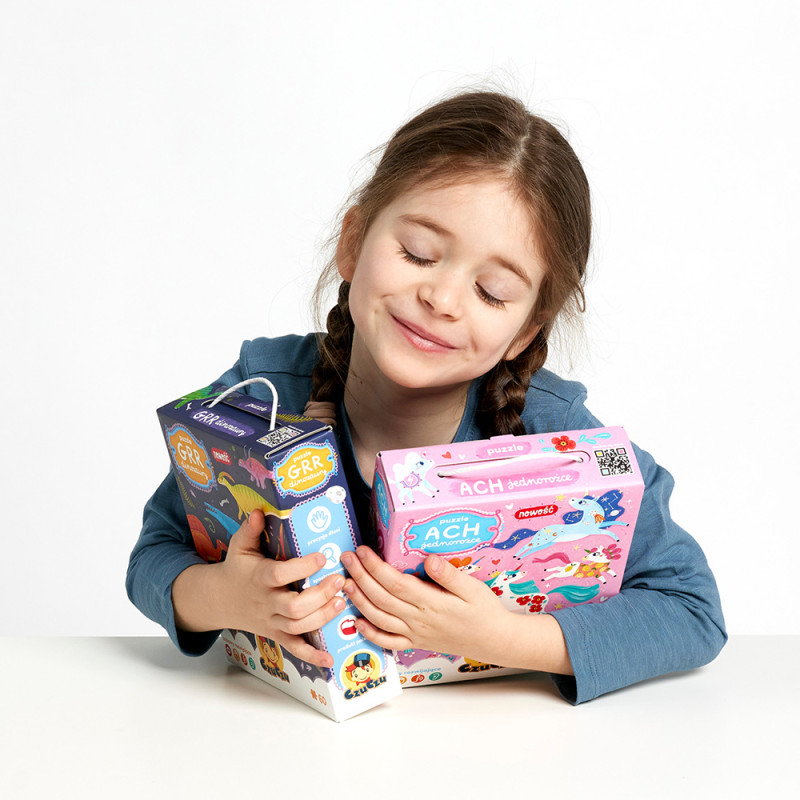 Bawcie się razem! Zacznijcie od ułożenia puzzli i obejrzenia ilustracji, aby poznać wszystkie magiczne konie i rumaki. Opiszcie ich kolory i atrybuty. Pomysłów na rozwijające zabawy inspirowane puzzlami jest mnóstwo: narysujcie własne jednorożce i pegazy, udawajcie je, wymyślajcie historyjki inspirowane bohaterami ilustracji. Oprawiona w ramkę układanka to przepiękna ozdoba pokoju ciekawego świata przedszkolaka. Puzzle ACH Jednorożce to pozycja obowiązkowa i doskonały pomysł na prezent dla najmłodszych marzycielek i marzycieli.