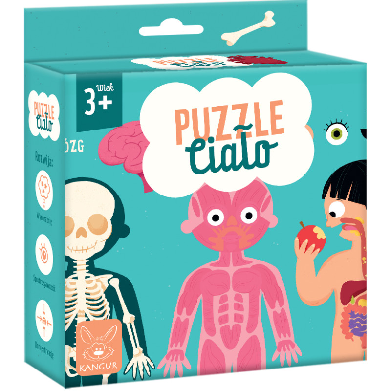 Puzzle dla małych dzieci, które bardzo lubią poznawać ciekawostki o ciele człowieka.