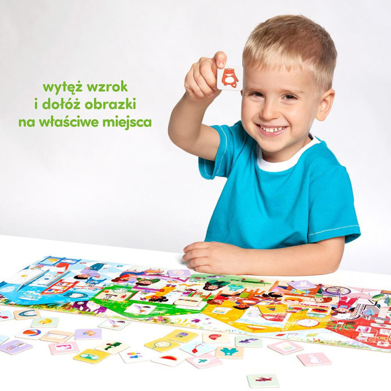 ● zestaw zawiera: puzzle (40 elementów), 32 dokładane obrazki, plakat edukacyjny