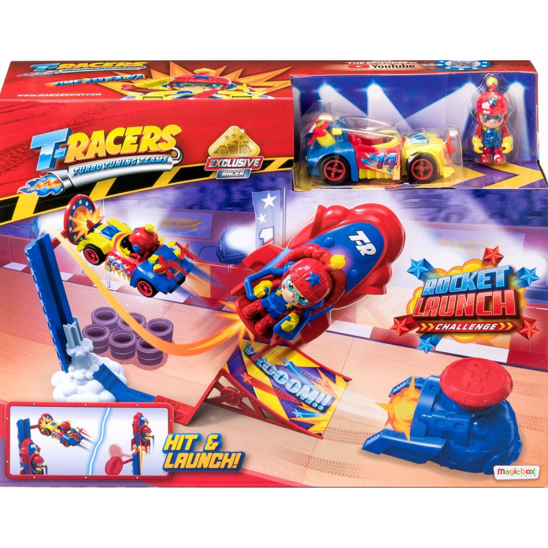 Czas to udowodnić! Umieść swojego T-Racera w pojeździe, wyceluj, skalibruj siłę i... startuj! Czy udało Ci się trafić w tarczę? Jeśli uda Ci się dobrze wycelować, wyślesz rakietę na księżyc! Jeśli nie, nie poddawaj się i spróbuj jeszcze raz! Ile razy z rzędu uda ci się trafić do celu? Emocje gwarantowane!