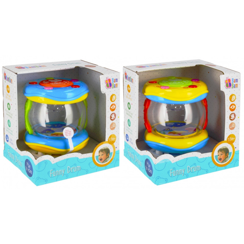 Zabawka w formie bębenka pozwala na odgrywanie ról przez dziecko i przeistoczenie się w małego muzyka. Kolorowe przyciski, wygrywające różnorodne melodie, oraz migoczące, barwne światełka gwarantują doskonałą zabawę, jednocześnie stymulując zmysły wzroku, słuchu, percepcji oraz dotyku
