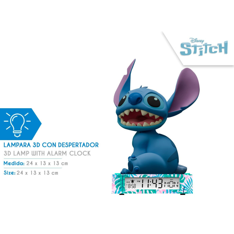 Lampka nocna Stitch Kids Euroswan LED Budzik Niebieska Dla Dzieci