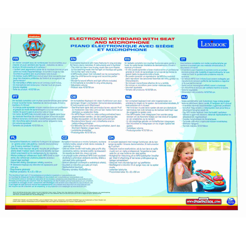 Lexibook Psi Patrol Keyboard z Mikrofonem i Siedziskiem Pianino 3+ Outlet