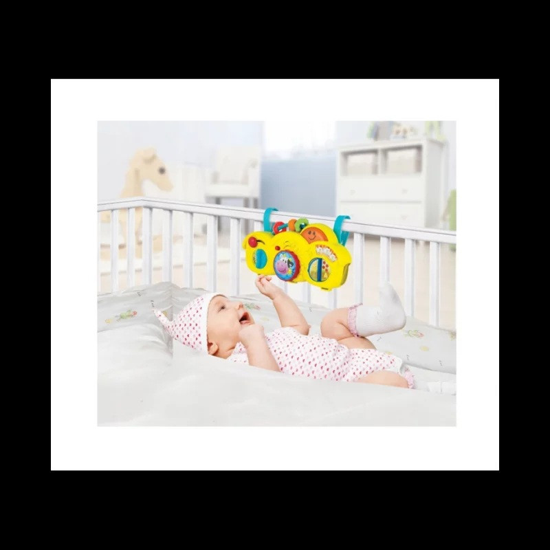 2. interaktywny, odczepiany panel z wiszącymi zabawkami do łóżeczka