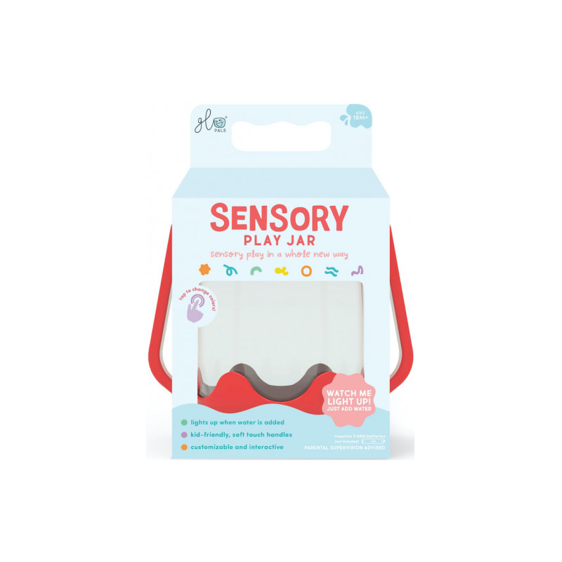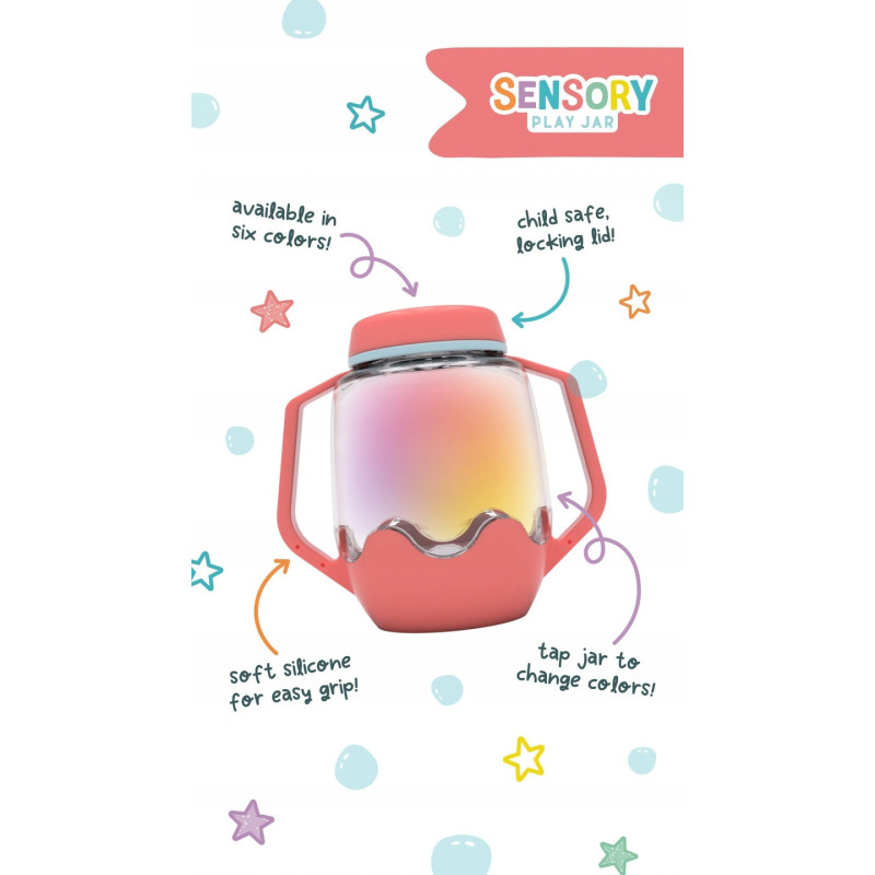 Słoik sensoryczny Glo Pals dostępny jest w 4 kolorach: niebieskim, czerwonym, fioletowym oraz zielonym.