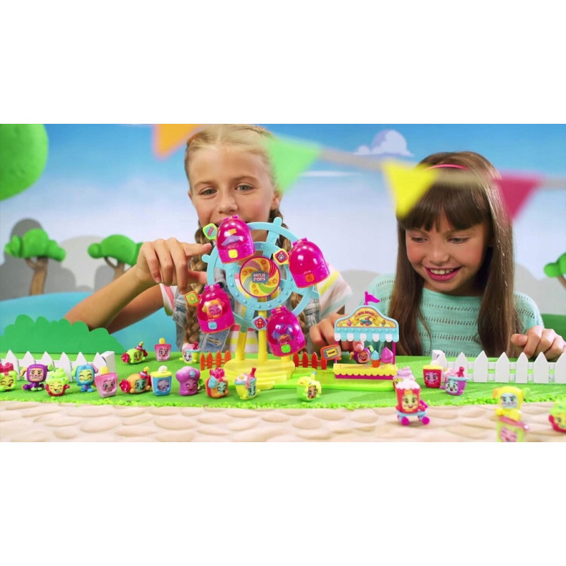 Czy może być coś bardziej magicznego niż dzień w wesołym miasteczku? Umieść MojiPops na diabelskim młynie i ciesz się wraz z nimi z fantastycznej przejażdżki. A może wolisz pojeździć na skuterze lub zjeść watę cukrową i lody? MojiPops świetnie się bawią, gdy rozmawiają ze sobą w swoim specjalnym języku - za pomocą emotikonów! Czy podoba im się jazda na karuzeli, czy kręci im się trochę w głowie? Zdecyduj, jak się czują, obracając ich buzie lub wymieniając minki z innymi MojiPops!