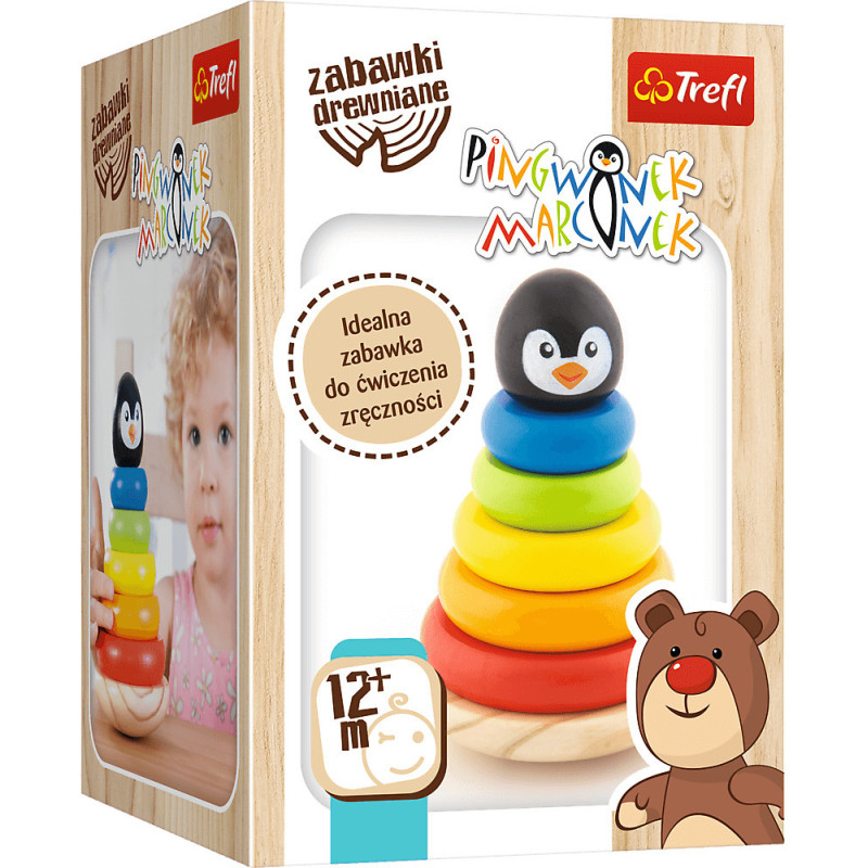 PINGWINEK MARCINEK PIRAMIDA ZABAWKA DREWNIANA 12M+