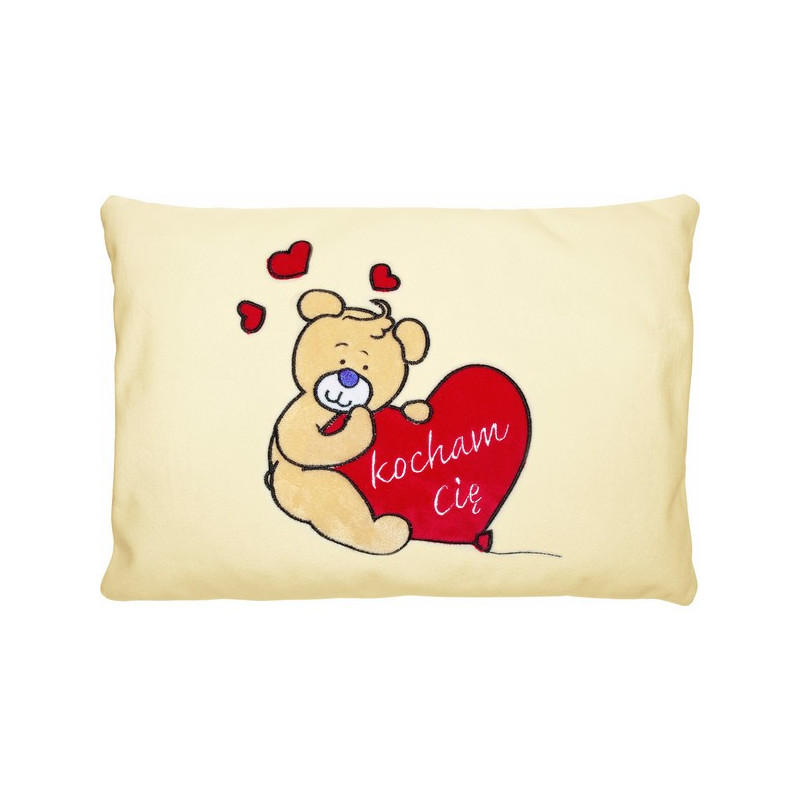 Milutka pluszowa podusia.Wyhaftowany miś z serduszkeim napis "Kocham cię".