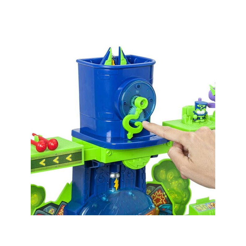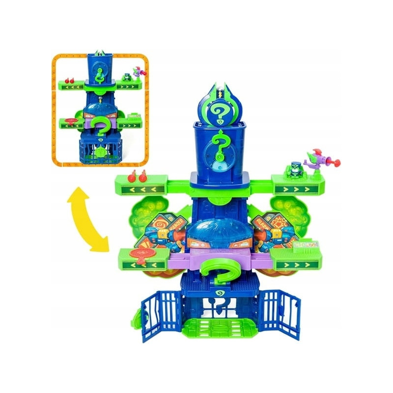 Jedna z wielkich tajemnic SuperRzeczy zostaje ujawniona w serialu telewizyjnym klanu „Kazoom Power”… Legowisko Enigmy! Chroń Kazoom przed złymi rękami złoczyńców dzięki przebiegłości bohatera. Otwórz wieżę i aktywuj system alarmowy (ma światła i dźwięki!). Strzelaj pociskami w każdego, kto się zbliży lub użyje pułapki na podłodze, jeśli uda mu się dostać do wnętrza. Rozwiąż zagadkę, aby dotrzeć do sterowca i uciec z Kazoomem. Los Kaboom City jest w twoich rękach! Zawiera ekskluzywną figurkę Enigmy.