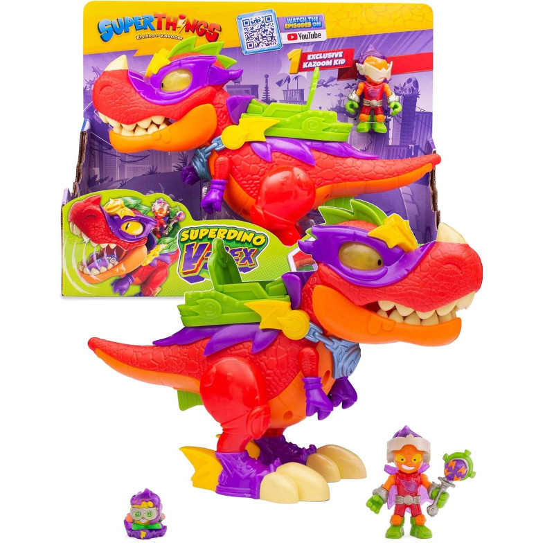 Dinozaur‑sojusznik Złoczyńców z serii SuperThings Rivals of Kaboom, wyposażony w efekty świetlne i dźwiękowe – idealny do dynamicznych starć z Bohaterami Kaboom City!