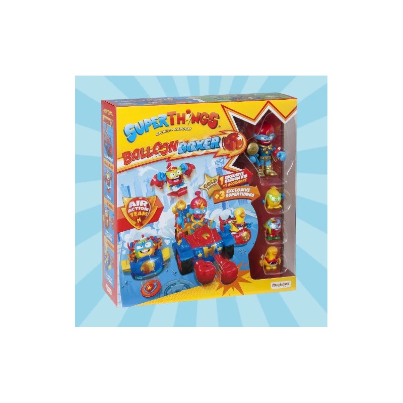 Kazoom Kids z serii SuperThings osiągnęły maksymalną prędkość! Bohater, Balloon Boxer, wkroczy do bitwy ze złotym, olśniewającym pojazdem i ruchomymi pięściami, które otwierają drogę do każdej sytuacji. Czy będzie w stanie wygrać walkę? Oczywiście, że tak, bo nie jest sam!