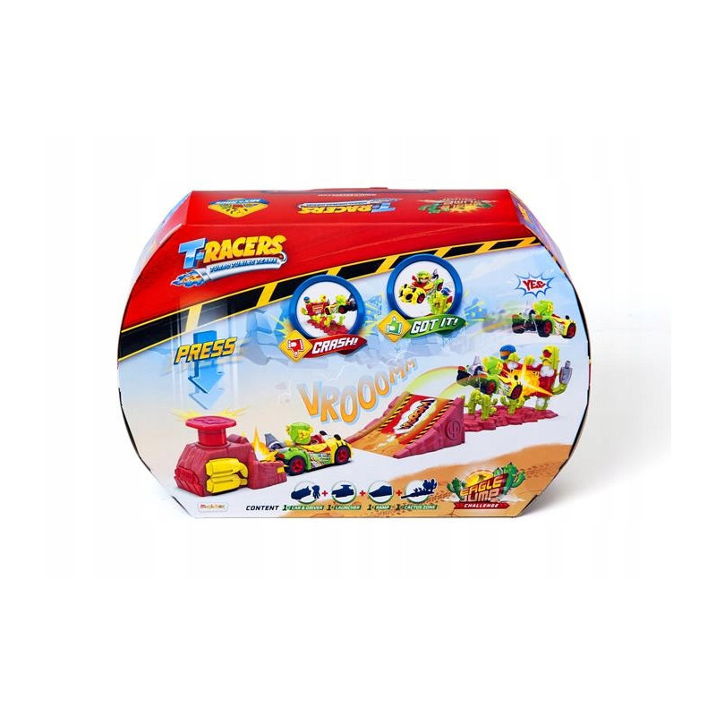 T-Racers zmierzą się ze swoim pierwszym wyzwaniem w Eagle Jump Challenge! Czy w pełnym słońcu, na środku pustyni, Wing Speed da radę pokonać strefę kaktusów, aby kontynuować wyścig? Umieść swój T-Racers na wyrzutni, wyceluj, skalibruj siłę… i startuj! Czy uda się przeskoczyć barierę z kaktusów, czy też samochód rozbije się lub spadnie na nią? Zwycięstwo w tej próbie jest w Twoich rękach!