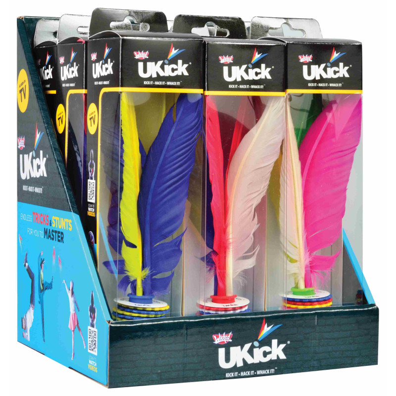 Uznany za najlepszą nową zabawkę na londyńskich targach zabawek, UKick jest uważany za największe szaleństwo na placach zabaw roku! Łącząc elementy badmintona i ulicznej piłki nożnej, celem jest utrzymanie UKicka nad ziemią tak długo, jak to możliwe.